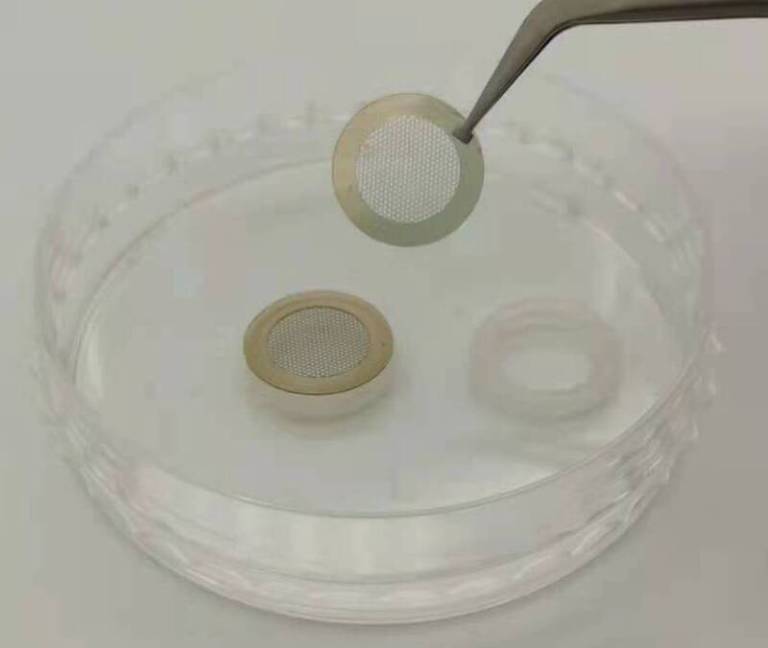 Culture patch is a device of self assembled ultra thin collagen and laminin film with monolayer nanofibers backbones deposited on a patterned microframe. It is morphologically and materially in-vivo like basement membrane. Typically, it is used for off-ground cell culture. When used for culture and differentiation of human pluripotent stem cells, it allows minimizing the exogenous contact and increasing the nutrient uptake as well as the tissue organization.
